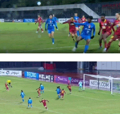 上半场补时第1分钟,纳萨夫女足打出一波漂亮的连续配合,最后卡拉奇克在禁区左侧送出精妙横传,库德拉托娃跟进在门前近距离迎球推射得手帮助纳萨夫女足队扳平比分。