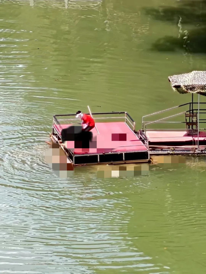 事故现场水里有血迹。图/受访者提供。